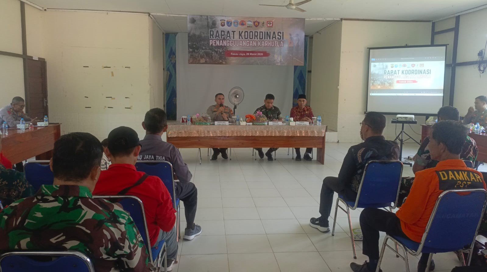 Langkah strategis tersebut diwujudkan melalui Rapat Koordinasi (Rakor) Penanggulangan Karhutla yang digelar di Aula Kantor Kecamatan Rasau Jaya, Jalan Sultan Agung, Desa Rasau Jaya Satu pada hari Kamis (26/3/2026) kemarin pagi.