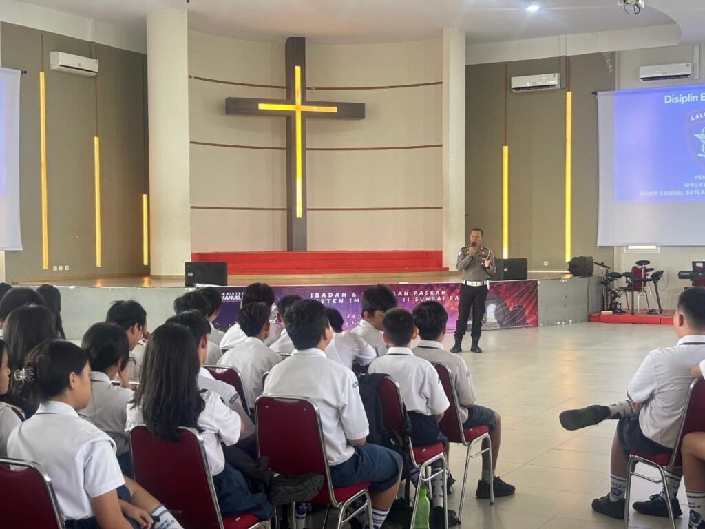 Hadir dalam kegiatan tersebut, Kanit Kamsel Iptu Fachri bersama Ipda Ya’ Rudi Gunawan, Briptu Tajul Ilmi, Bripda Andri Imam Arianto, Bripda Kurniadi, dan Bripda Yulianingsih. Kehadiran tim disambut hangat oleh Kepala Sekolah SMP Kristen Imanuel, jajaran dewan guru, serta ratusan siswa-siswi.