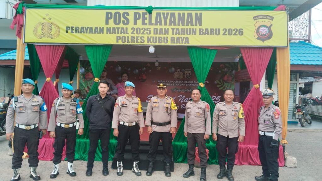 TBNEWSPOLRESKUBURAYA.ID, KUBU RAYA – Memasuki perayaan Natal 2025 dan Tahun Baru 2026, Polres Kubu Raya mulai menyiagakan personel di berbagai titik di wilayah hukum polres kubu raya. Salah satu fokus pengamanan berada di Pos Parit Baru, Jalan Adi Sucipto KM 7.3, Kecamatan Sungai Raya. Sejak Sabtu (20/12/2025), sejumlah personel dari Polres Kubu Raya sudah bersiaga untuk memastikan kondusivitas wilayah serta kelancaran arus lalu lintas.